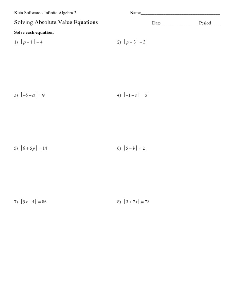 Solving Absolute Value Equations Solve Each Equation Equations Mathematical Objects
